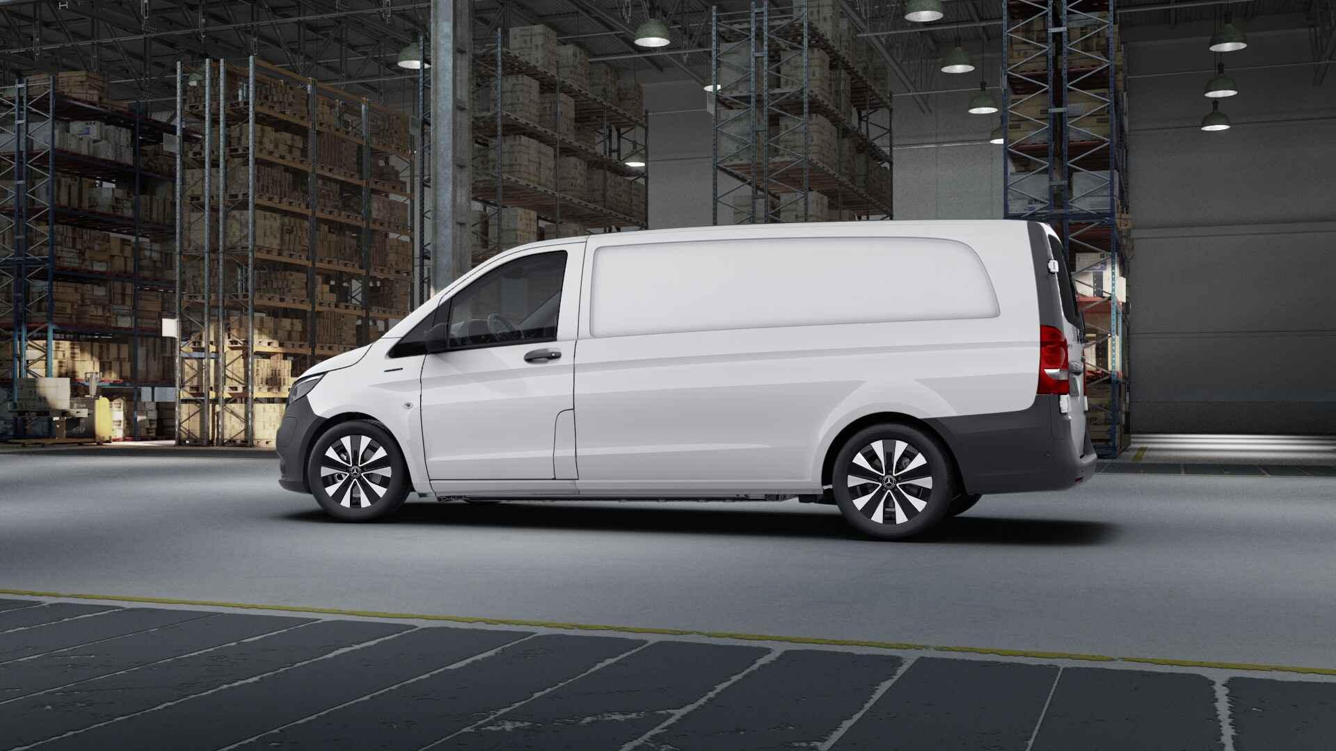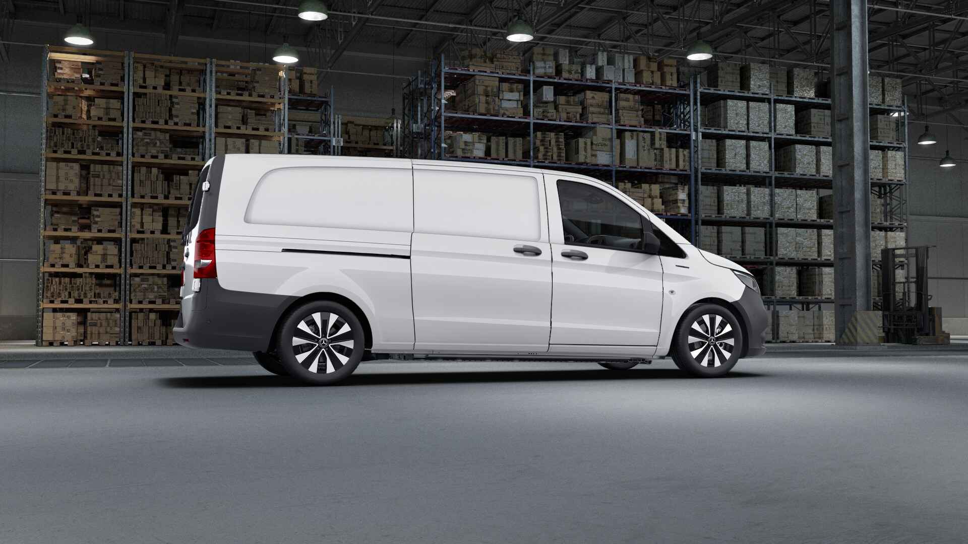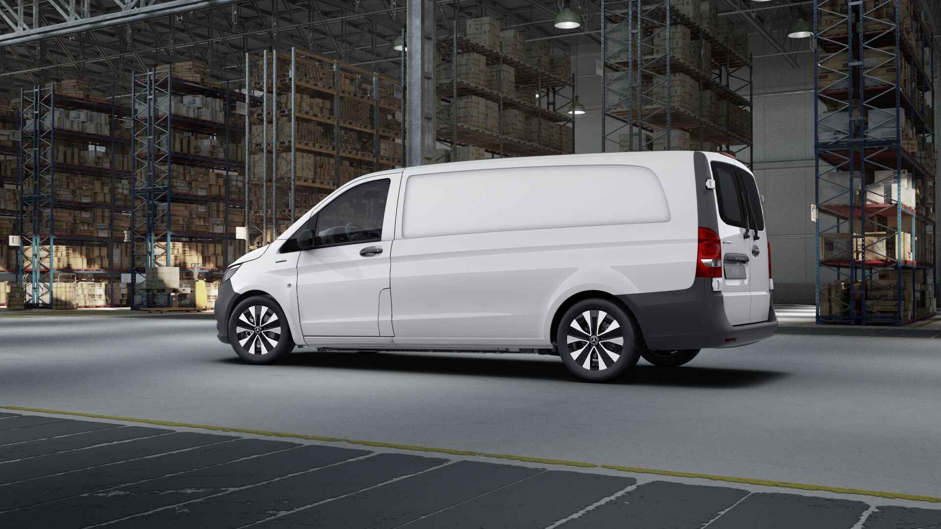 De eVito Gesloten Bestelwagen heeft een actieradius tot 135 - 149 km., De geïnstalleerde batterijcapaciteit bedraagt 41 kWh en kan bij een laadvermogen van 7,2 kW in ca. 6 uur tijd van 0 tot 100% worden opgeladen.